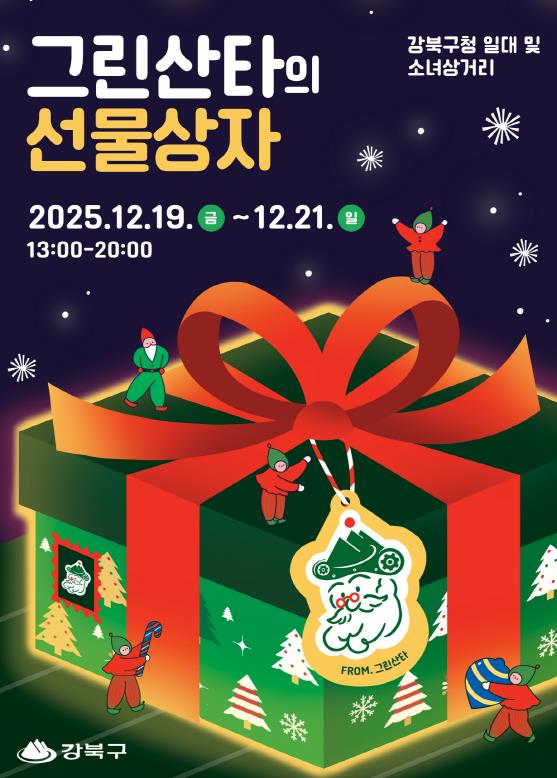 [뉴스다컴] 서울 강북구는 오는 19일부터 21일까지 3일간 강북구청과 그 일대에서 2025 강북 크리스마스 마켓 ‘그린산타의 선물상자’를 개최한다고 밝혔다.
