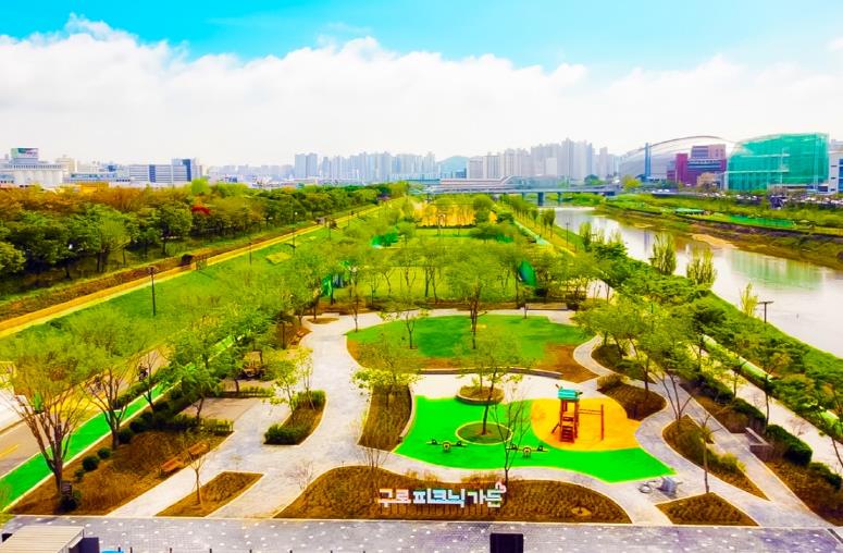 | ▲ 안양천변을 따라 조성된 ‘구로 피크닉가든’의 전경 모습 |