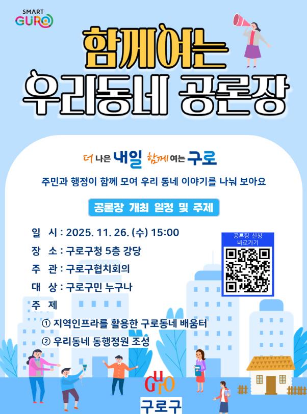 [뉴스다컴] 구로구가 오는 26일 오후 3시 구청 강당에서 ‘2025 함께여는 우리동네 공론장’을 개최한다.