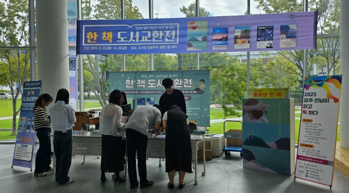 [뉴스다컴] 전남대학교 도서관은 지난 9월 23일부터 9월 26일까지 나흘간 도서관 정보마루 동편 1층에서 열린 ‘2025 한 책 도서교환전’이 성황리에 마무리됐다고 밝혔다.