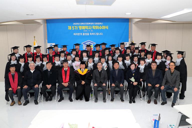 [뉴스다컴] 안동시는 11월 25일 가톨릭상지대학교 두봉관에서 ‘제5기 경북도민행복대학 안동캠퍼스 명예학사학위 수여식’을 열었다.