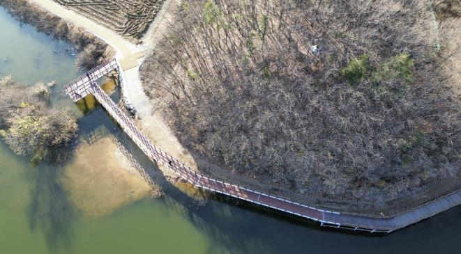 이동저수지 둘레길 조성사업은 2022년부터 단계적으로 진행해왔고, 일부 구간이 단절된 부분에 대해 저수지 서쪽에 있는 수변덱을 약 72m 연장해 산림구간 산책로와 연결했다.