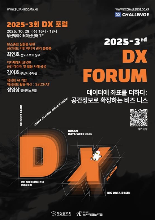 [뉴스다컴] 부산시는 오는 10월 29일 오후 4시 부산빅데이터혁신센터(해운대구 센텀동로 45)에서 '2025-3회 디지털전환(DX) 포럼'을 개최한다고 밝혔다.