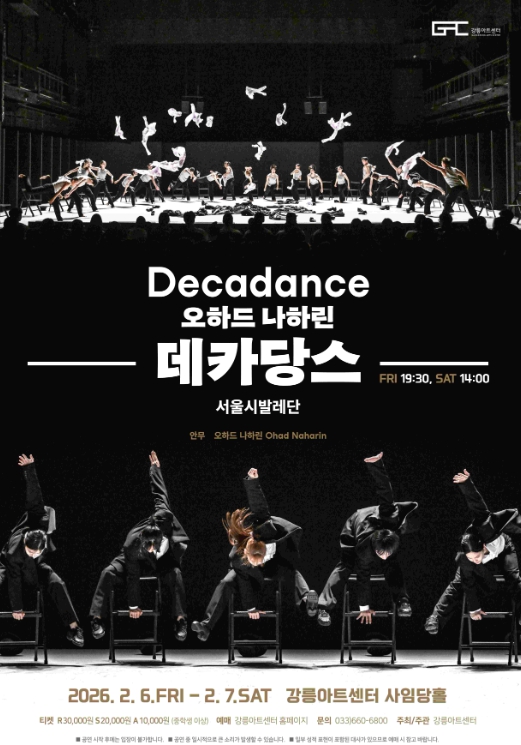 한편, 강릉아트센터는 이번 서울시발레단의 '데카당스' 공연을 시작으로 국립발레단(3·5월), 유니버설발레단(11월) 둥 국내를 대표하는 발레단들과 함께하는 기획공연을 순차적으로 선보일 예정이다.