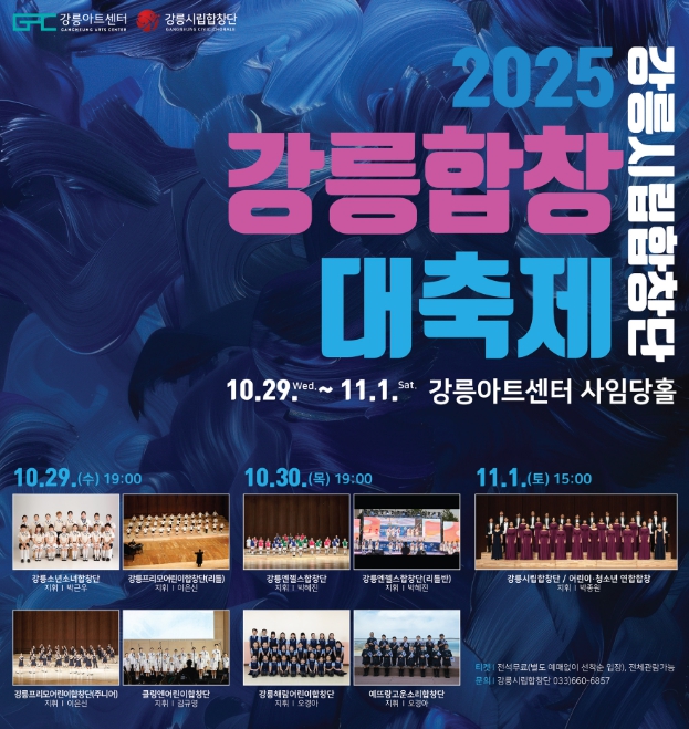 [뉴스다컴] 강릉시립합창단과 관내 어린이·청소년 합창단이 함께하는 '2025 강릉합창대축제'가 오는 10월 29일부터 11월 1일까지 강릉아트센터 사임당홀에서 개최된다.
