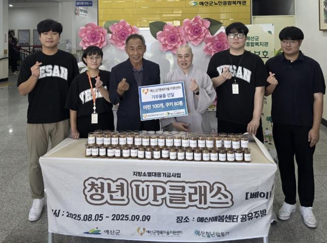 ▲ 예산군행복마을지원센터 청년 UP 클래스 참가자들의 기부 활동 |