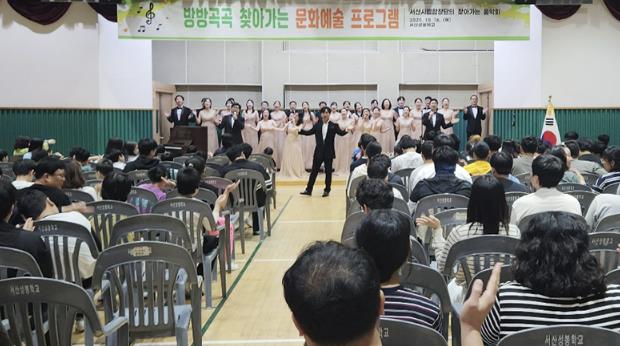 ▲ 지난 16일 서산성봉학교에서 진행된 ‘방방곡곡 찾아가는 맞춤형 문화예술행사’ |