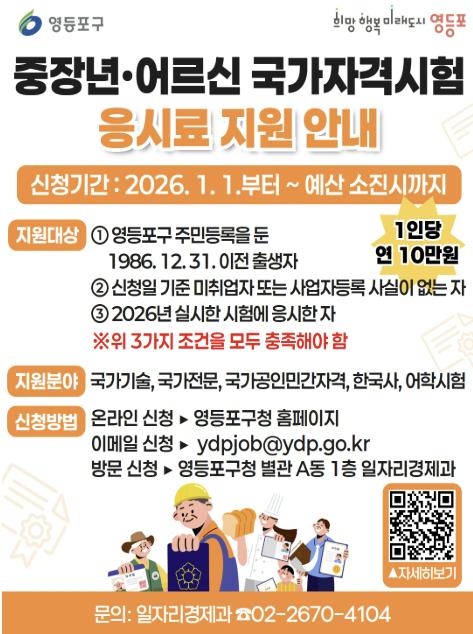 | ▲ 영등포구 중장년 · 어르신 국가자격시험 응시료 지원 홍보 포스터 |