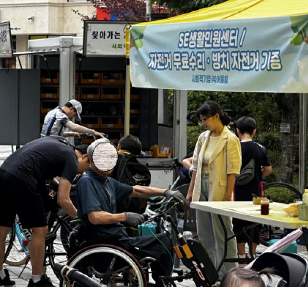 특히, 지난 13일 모종 캐슬어울림에서 개최된 행사에서는 사회적경제 기업 13개소와 시민 1,541명이 참여한 가운데 △폐자원을 활용한 새활용 체험 △헌옷·방치자전거 기증을 위한 자원순환 스테이션 △자전거 수리·칼갈기 등 생활민원 서비스 등 다양한 프로그램이 운영돼 시민들의 큰 호응을 얻었다.