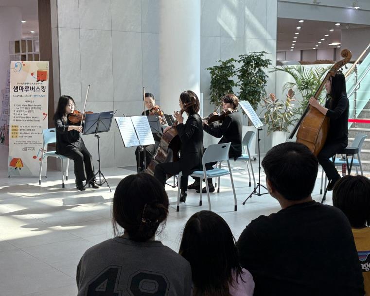 [뉴스다컴] 지난 25일 샘마루도서관에서 열린 ‘샘마루버스킹–현악 5중주’ 공연이 시민들의 뜨거운 관심 속 마무리됐다.