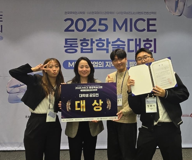 [뉴스다컴] 전남대학교 문화관광경영학과 정환석, 박정현, 김동언 학생들이 ‘2025년 MICE 통합학술대회 대학생 공모전’에서 대상을 수상하며 지역 MICE 산업의 미래를 이끌 청년 인재로 주목받고 있다.