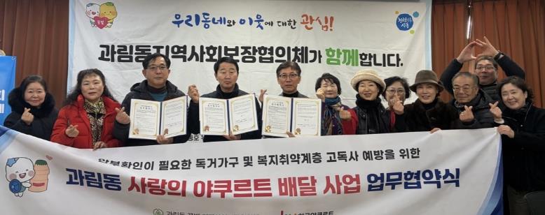 [뉴스다컴] 시흥시 과림동 지역사회보장협의체는 지난 1월 19일 ㈜한국야쿠르트 역곡점과 복지 취약계층 안부 확인을 위한 ‘사랑의 요구르트 배달’ 사업 추진 업무협약을 체결했다.