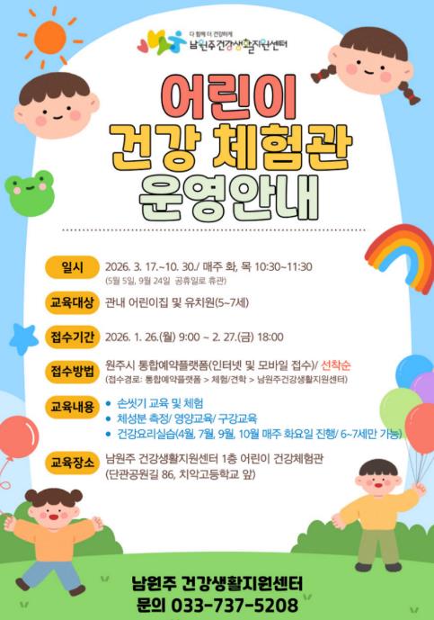 [뉴스다컴] 남원주건강생활지원센터는 손 씻기, 영양 등을 주제로 미취학 아동들에게 건강 교육을 제공하는 ‘어린이 건강체험관’을 운영하고 있다.