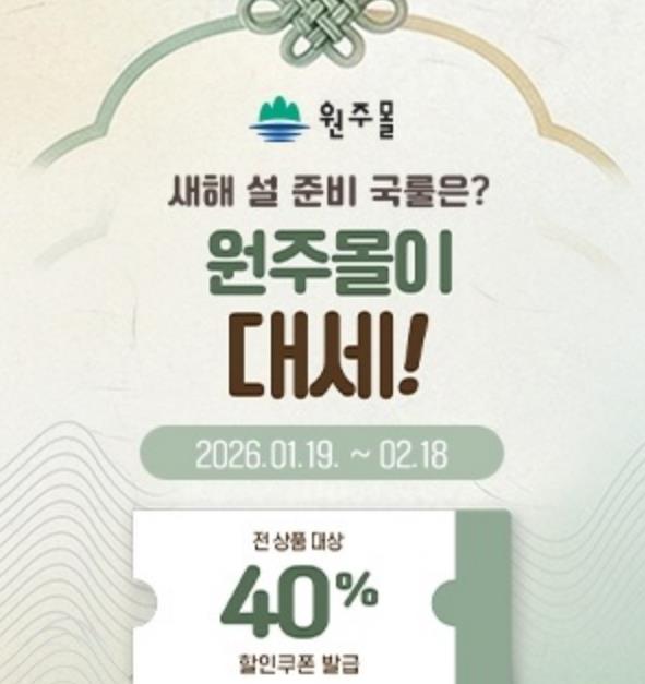 [뉴스다컴] 원주시 공식 인터넷 쇼핑몰 ‘원주몰’이 설 명절을 맞아 다음 달 18일까지 ‘2026 원주몰 설맞이 기획전’을 진행한다.