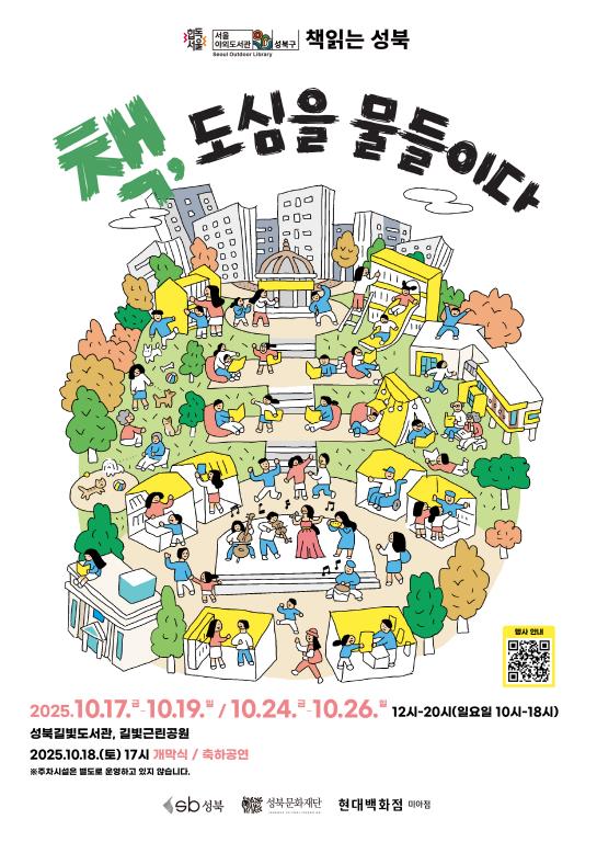 [뉴스다컴] 서울 성북구와 성북문화재단이 오는 10월 17일부터 26일까지 매주 금·토·일요일, 성북길빛도서관과 길빛근린공원 일대에서 『서울야외도서관 책 읽는 성북 – 책, 도심을 물들이다』를 운영한다.