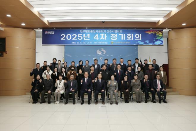 [뉴스다컴] 민주평화통일자문회의 상주시협의회는 12월 17일 오전 10시 30분 상주시청 대회의실에서 상주시장(대행기관장), 자문위원 등 50명이 참석한 가운데 ‘화해·협력의 남북관계 재정립을 위한 정책방향’을 주제로 2025년 4분기 정기회의를 개최했다.