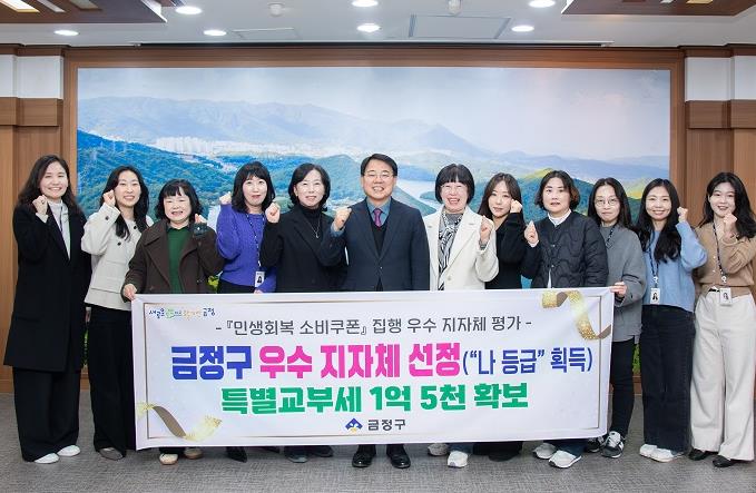 [뉴스다컴] 부산시 금정구는 지난 10일 행정안전부가 실시한 『민생회복 소비쿠폰』 집행 우수지자체 평가에서 “나 등급”을 획득하며 우수기관으로 선정됐다고 밝혔다.