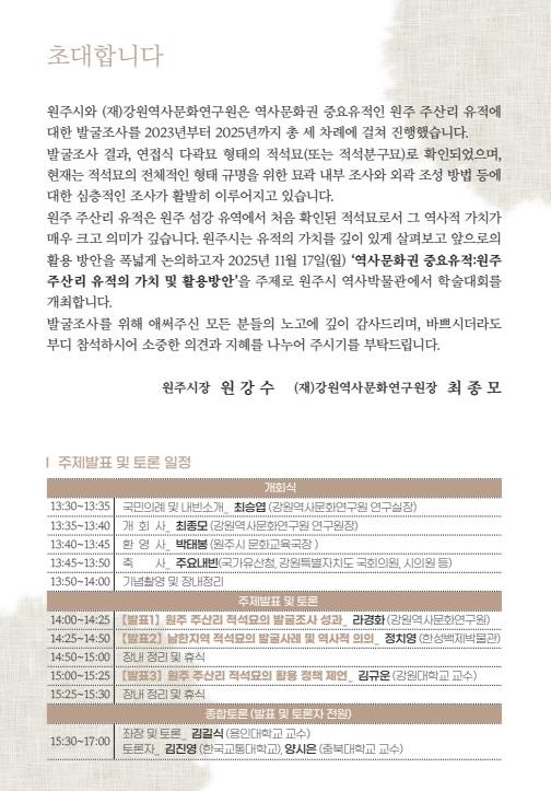 또한 강원역사문화연구원 라경화 팀장, 한성백제박물관 정치영 학예연구사, 강원대학교 김규운 교수 등이 참여하는 다양한 주제 발표가 진행될 예정이다.
