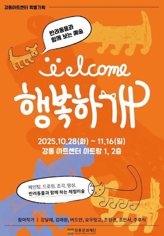 [뉴스다컴] 강동문화재단은 오는 10월 28일부터 11월 16일까지 강동아트센터 아트랑에서 반려동물과 함께 예술을 경험할 수 있는 전시 《행복하개展》을 선보인다.