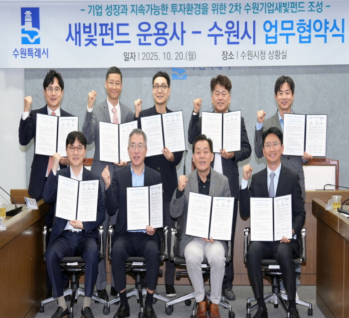 수원특례시는 20일 시청 상황실에서 2차 수원기업새빛펀드를 운용할 8개 사와 업무협약을 체결하고, 협력을 약속했다.