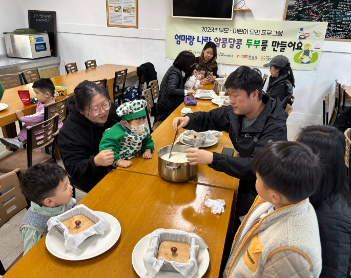 [뉴스다컴] 문경시 어린이·사회복지급식관리지원센터는 등록된 어린이집(유치원) 학부모, 어린이 200명을 대상으로 10월 25일 1회차를 시작으로 11월 8일, 22일 3회에 걸쳐‘엄마랑 나랑 알콩달콩 두부 만들기’요리 프로그램을 진행했다.