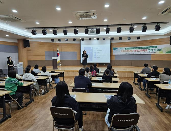 [뉴스다컴] 교육발전특구 시범지역 사업으로써 마차고등학교는 지난 21일 영월청소년수련관에서 중학생 학부모를 대상으로 2026학년도 교육과정 설명회를 개최하며 지역의 보건·간호 인력 양성을 위한 선이수 학점제의 순조로운 추진을 이어가고 있다.