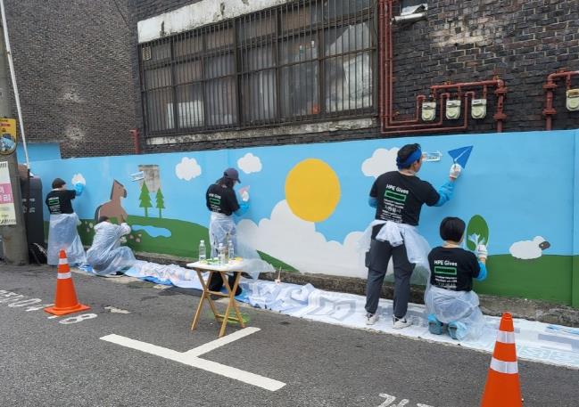 [뉴스다컴] 서울 성동구 마장동 자원봉사캠프는 지난 9월 (사)함께하는 한숲, HPE기업과 함께 민관협력으로 ‘주택담장 벽화그리기 행사를 진행했다.