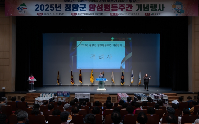 [뉴스다컴] 청양군은 청양군여성단체협의회(회장 손미옥) 주최로 지난 3일 청양문화예술회관 대공연장에서 ‘모두가 존중받는 성평등 사회, 모두가 행복한 청양’ 슬로건 아래 청양군 양성평등주간 기념행사를 개최했다.