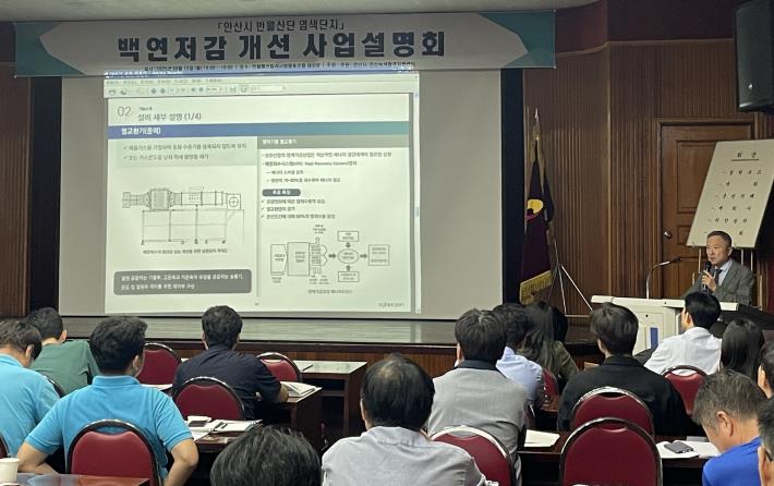[뉴스다컴] 안산시는 지난 15일 반월패션칼라사업협동조합 대강당에서 ‘반월산단 염색단지 백연저감 개선 사업설명회’를 개최했다고 17일 밝혔다.