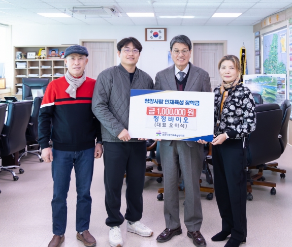 (재)청양사랑인재육성장학회(이사장 김돈곤)는 지난 29일 청정바이오로부터 장학금 100만 원을 기탁받았다고 밝혔다.