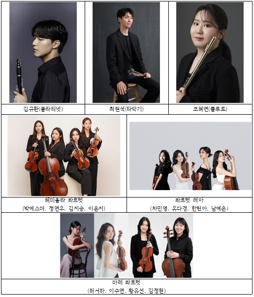 마지막 무대는 헤미올라 스트링 콰르텟(박에스더·정연우·김지승·이윤지, 서울대학교 1․2학년 재학)이 △슈베르트의 ‘현악 사중주 제14번 D단조, D.810, 죽음과 소녀’를 선보이며 마무리한다.
