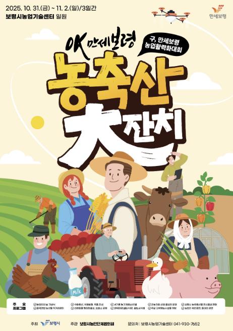 [뉴스다컴] 보령시와 보령시농민단체협의회는 ‘동행 30년, 농업인과 함께 OK보령’을 주제로 ‘OK 만세보령 농축산 대잔치’를 오는 10월 31일부터 11월 2일까지 보령시농업기술센터 일원에서 개최한다.