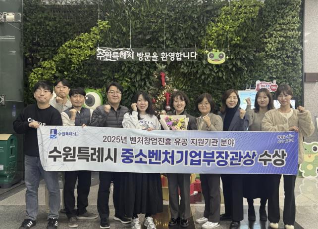 [뉴스다컴] 수원특례시가 중소벤처기업부가 주관한 벤처창업진흥 유공 포상에서 ‘우수정책입안단체’로 선정돼 중기부 장관상을 받았다. 시상식은 27일 경기창조경제혁신센터에서 열린 ‘2025 경기 딥테크 스타트업 FLEX’ 행사 중 열렸다.