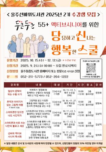 ▲ 울주선바위도서관, ‘액티브시니어 당신행복스쿨’ 수강생 모집 |