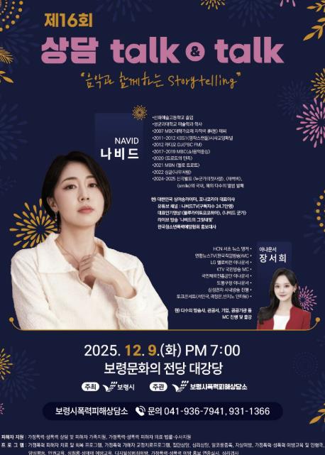 [뉴스다컴] 보령시는 지난 9일 보령문화의전당 대강당에서 음악과 함께하는 스토리텔링 ‘제16회 상담 talk&talk’ 행사를 개최했다고 밝혔다.