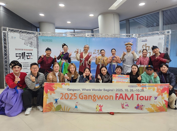 [뉴스다컴] 강원특별자치도와 강원관광재단은 ‘2025~2026 강원 방문의 해’ 연계 글로벌 관광객 유치를 위한 강원형 치유관광 초청 홍보 여행(팸투어)을 10월 26일부터 28일까지 2박 3일간 평창과 정선 일대에서 실시했다.
