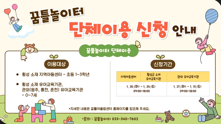 | ▲ 꿈틀놀이터, 2026년도 상반기 단체 이용 신청 접수 |