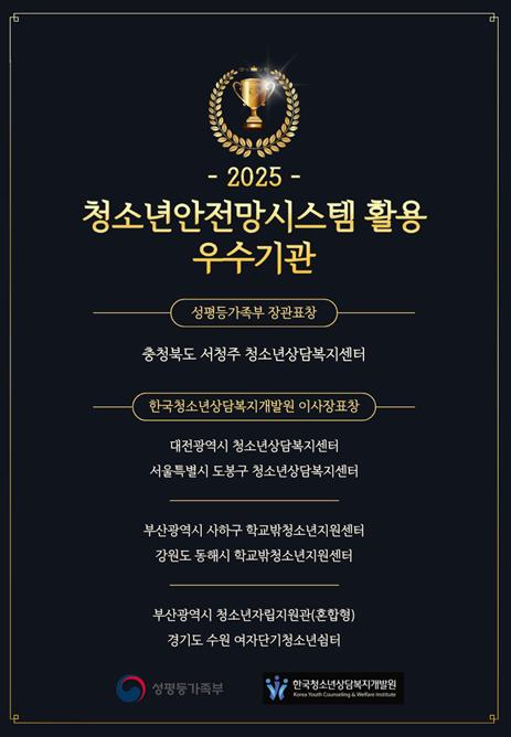 시상식은 11월 20일 제주도 휘닉스 아일랜드에서 열린 2025 학교밖청소년 지원사업 성과보고 대회에서 진행됐다.