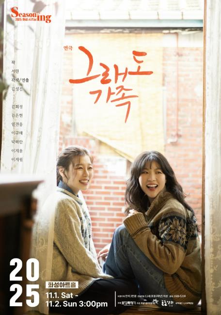 [뉴스다컴] 화성시문화관광재단은 오는 11월 1일부터 2일까지 화성아트홀에서 연극 《그래도 가족》을 선보인다.