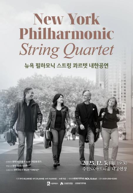 [뉴스다컴] 수원문화재단은 오는 12월 5일 금요일 오후 7시 30분, 수원SK아트리움 대공연장에서 ‘뉴욕 필하모닉 스트링 콰르텟 내한공연’을 개최한다.