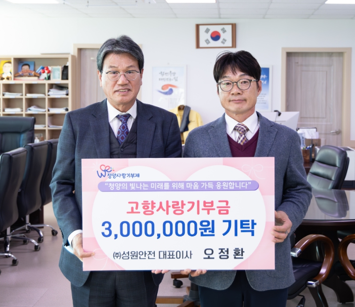 [뉴스다컴] 청양군은 24일 ㈜성원안전(대표 오정환)이 고향사랑기부금 300만 원을 기탁했다고 밝혔다.