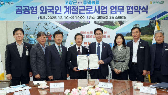 [뉴스다컴] 고창군과 흥덕농협이 지난 10일 2027년 공공형 계절근로사업 추진을 위한 업무협약(MOU)을 체결했다.