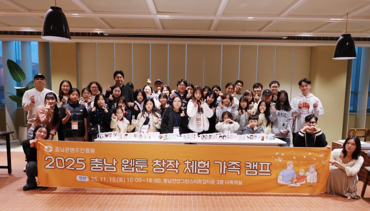 [뉴스다컴] 충남콘텐츠진흥원은 11월 8일(서산)과 15일(천안) 두 차례에 걸쳐 개최한 ‘2025 충남 웹툰 창작체험 가족 캠프’를 성황리에 마무리했다고 밝혔다.