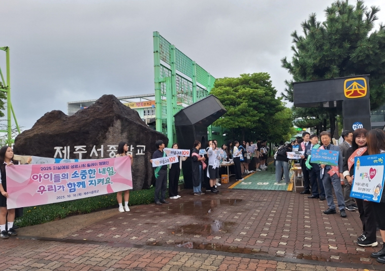 [뉴스다컴] 제주도교육청 제주서중학교는 16일 오전 8시부터 8시 30분까지 아침 등교 시간을 활용하여, 제주특별자치도교육청과 함께하는 ‘2025 자살예방 생명사랑 릴레이 캠페인’을 진행했다.