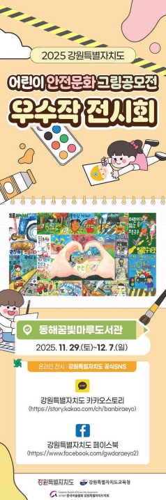 [뉴스다컴] 동해꿈빛마루도서관은 강원특별자치도가 주관한 ‘2025년 어린이 안전문화 그림 공모전’에서 입상한 우수작품 전시회를 개최한다.