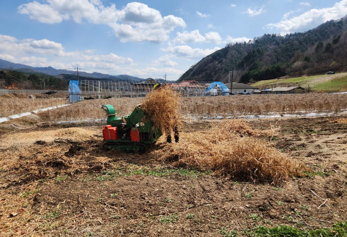 올해 봄철에는 읍·면 행정복지센터를 통해 신청을 접수받아 40여 농가 61필지를 대상으로 총 121,327㎥의 영농부산물을 파쇄한 바 있으며, 가을철에도 같은 방식으로 신청 농가를 대상으로 순차적으로 지원할 예정이다.