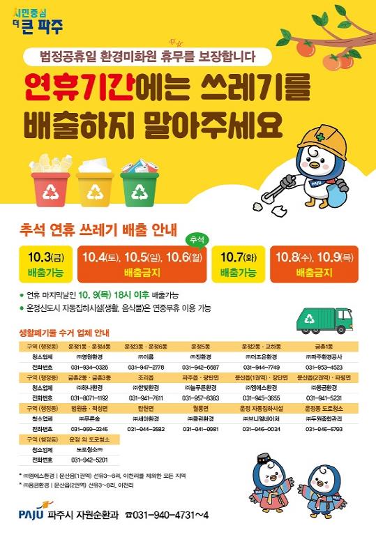 ▲ 파주시, 추석 연휴 기간 쓰레기 배출은 잠시 멈춰주세요 |