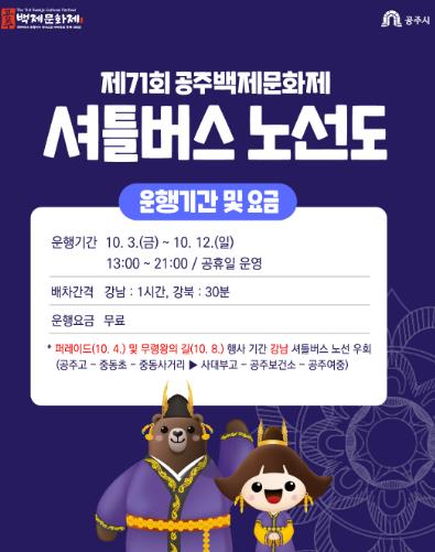 ▲ 제71회 백제문화제, 무료 셔틀버스 이용하세요! |