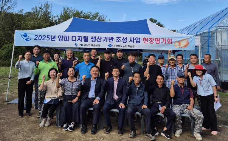 [뉴스다컴] 구미시는 9월 29일 선산읍 생곡리 시범농가에서 ‘2025년 양파 디지털 생산기반 조성’ 사업 평가회를 열고, 기계 정식에 적합한 양파 육묘 모델을 선보였다. 이날 행사에는 양파 재배 농업인들이 참석해 새 기술 적용 현장을 직접 확인했다.