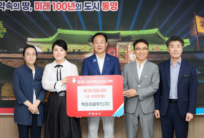 [뉴스다컴] 통영시에 소재한 빅마마씨푸드(주)는 지난 24일 지역의 인재를 육성하는 데 보탬이 되고자 인재육성기금 2000만 원을 통영시(시장 천영기)에 기탁했다.